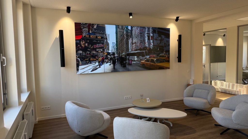 Die neue Mediawall ist ein gelungenes Beispiel dafür, wie moderne Medientechnik auch in Kanzleiumgebungen eingesetzt werden kann, um den ersten Eindruck nachhaltig zu prägen und Aufenthaltsbereiche funktional wie atmosphärisch aufzuwerten.
