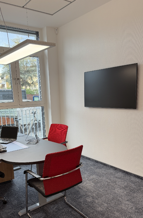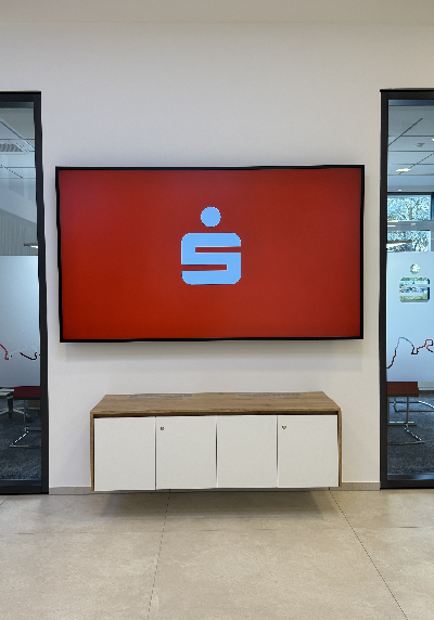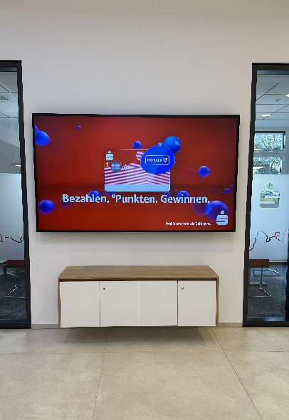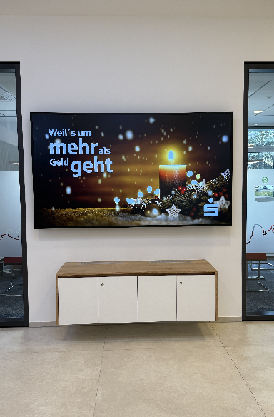 Im Rahmen der technischen Modernisierung wurden acht 55-Zoll-Signage-Screens an den Beraterarbeitsplätzen installiert. Diese dienen als externe Displays und ermöglichen es, Beratungsgespräche visuell zu unterstützen, Inhalte klar darzustellen und gemeinsam mit Kundinnen und Kunden zu besprechen – ein deutlicher Mehrwert für Verständlichkeit und Interaktion.