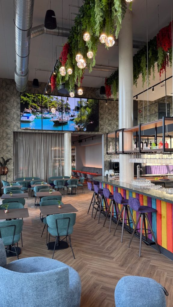 In Kombination mit der stilvoll integrierten Bar-Rezeption entsteht so ein moderner, lebendiger Mittelpunkt, der Gäste bereits beim Betreten des Hotels in seinen Bann zieht. Die dynamischen Inhalte von atmosphere365 unterstreichen das Designkonzept und verleihen dem Ambiente eine ganz besondere Atmosphäre.